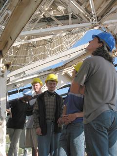 Sunday morning dawned bright and clear and it was time for the students to climb the telescope and get a close-up look at the microwave receivers. This is pictured below. Parallel processing then allowed the data from the planets to be reduced before the students departed on Sunday afternoon.